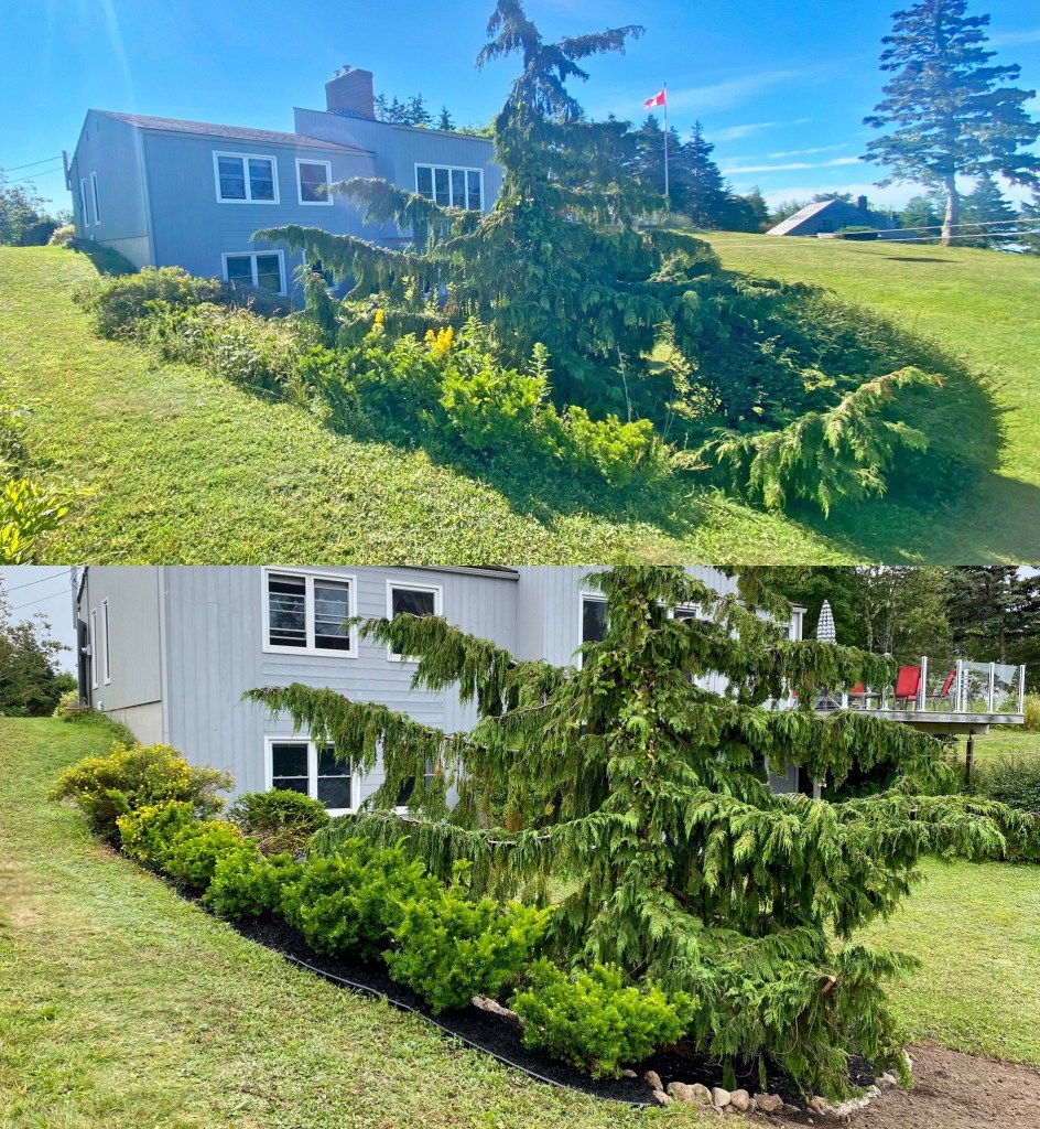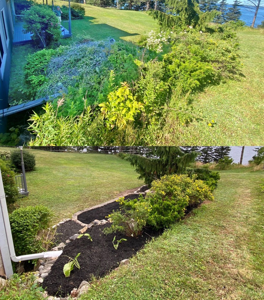 This new garden didn’t get planted right away after being converted from a pond. With high quality permanent barrier installed throughout the entire garden weeds won’t be an issue going forward. Instead the homeowner decided to wait for inspiration to strike and leave some space to move plants she loved from other overgrown gardens we will be working on next year!